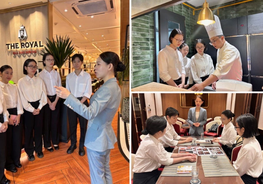 明光キャリアパートナーズとロイヤルHDは、こうした現状を踏まえ、教育を起点とした国際人材育成の新しいモデルを構築しています。ベトナム・ハノイ大学で日本語を学ぶ学生を対象に、寄附講座にて日本におけるレストランビジネスの基礎を座学で学ぶとともに、ロイヤルグループがベトナム・ホーチミンで展開する店舗において、店舗運営や管理体制を実践的に学ぶことで、日本のホスピタリティや経営マインドを総合的に身に付ける機会を提供いたします。教育と現場実践を融合することで、単なる職業体験にとどまらず、企業への共感や帰属意識を育み、将来の国際的な事業展開を支える人材へと成長できる学習プロセスを設計しています。