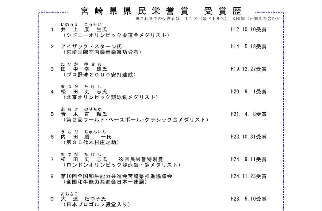 宮崎県県民栄誉賞とは