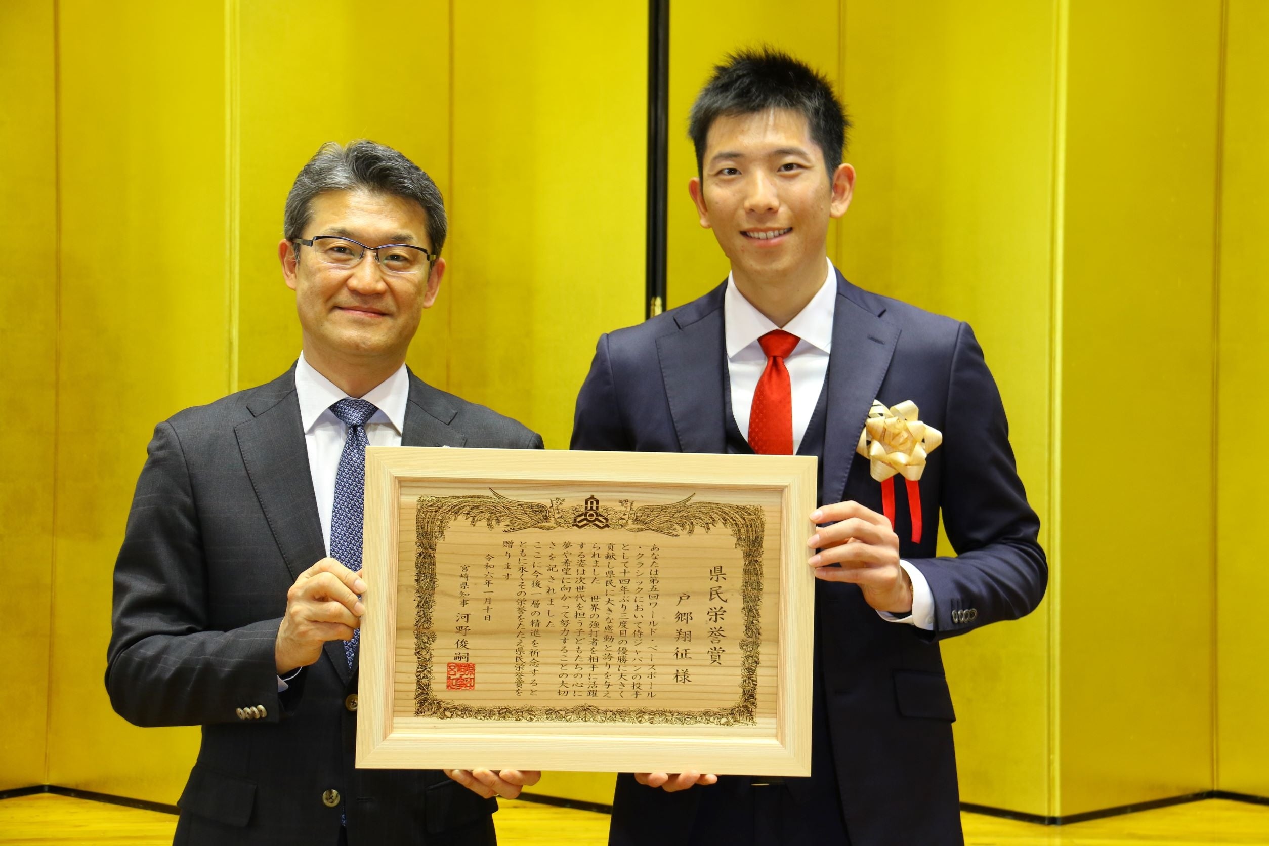 第5回WBC(ワールド・ベースボール・クラシック)において投手として活躍し、侍ジャパンの優勝に大きく貢献された、読売巨人軍の戸郷翔征選手への「宮崎県県民栄誉賞」の授賞式を1月10日(水)に実施しました。
