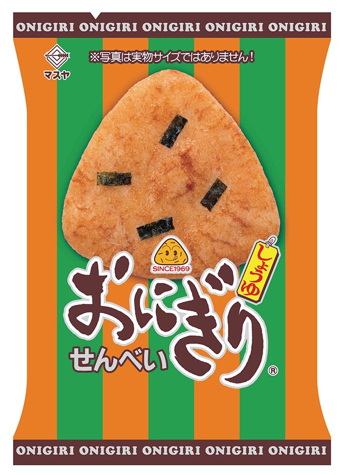 1969年に誕生したおにぎりの形の三角形をかたどった、ソフトな食感のおせんべいです。ふっくらサクサクのお米の生地に「だし」のうまみにこだわった甘辛のしょうゆタレで味付けし、風味豊かな焼き海苔が振りかけられております。