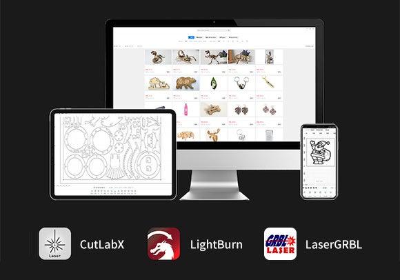 LightBurnおよびLaserGRBLソフトウェアとも互換性があります。