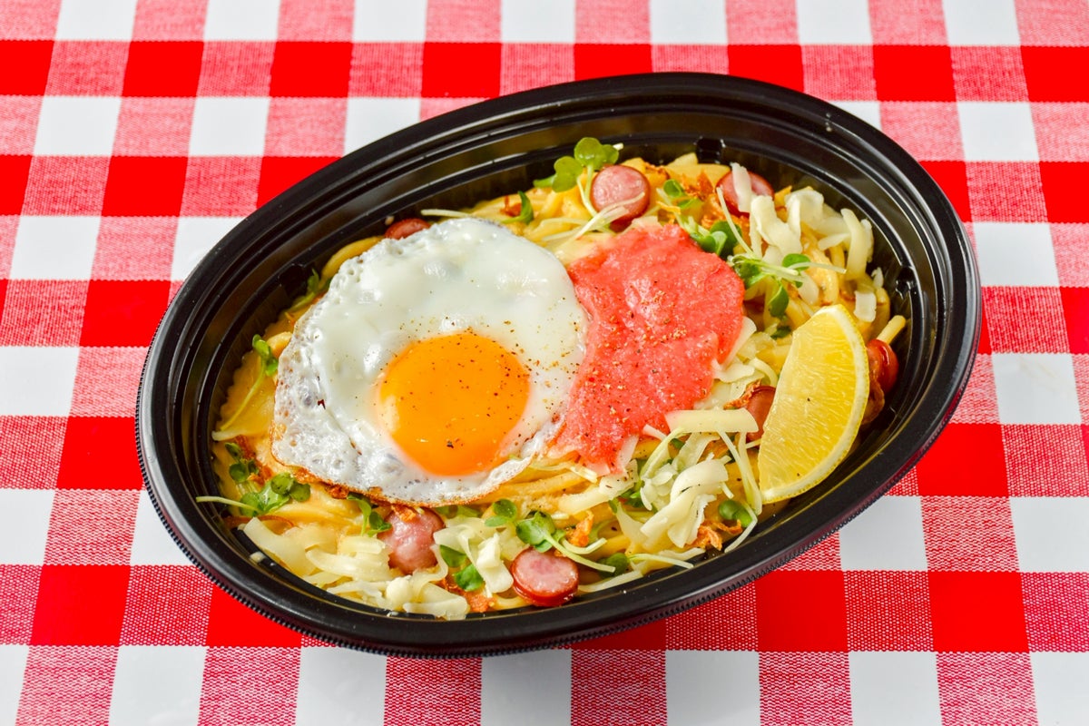 自慢の極太麺は前日に茹で置きして程よく水分を吸わせておくことで、ソースと絶妙に絡むよう仕上げています。毎日お店で手作りしているソースは、他では決して食べられない味わいが魅力。ボリューム感のあるスパゲッティー(小盛300g / 並盛400g / 大盛500g / メガ盛600g※)は目玉焼きや厚切りベーコン、焼きチーズといった追加トッピング(有料)で自分好みにカスタマイズすることも可能です。
