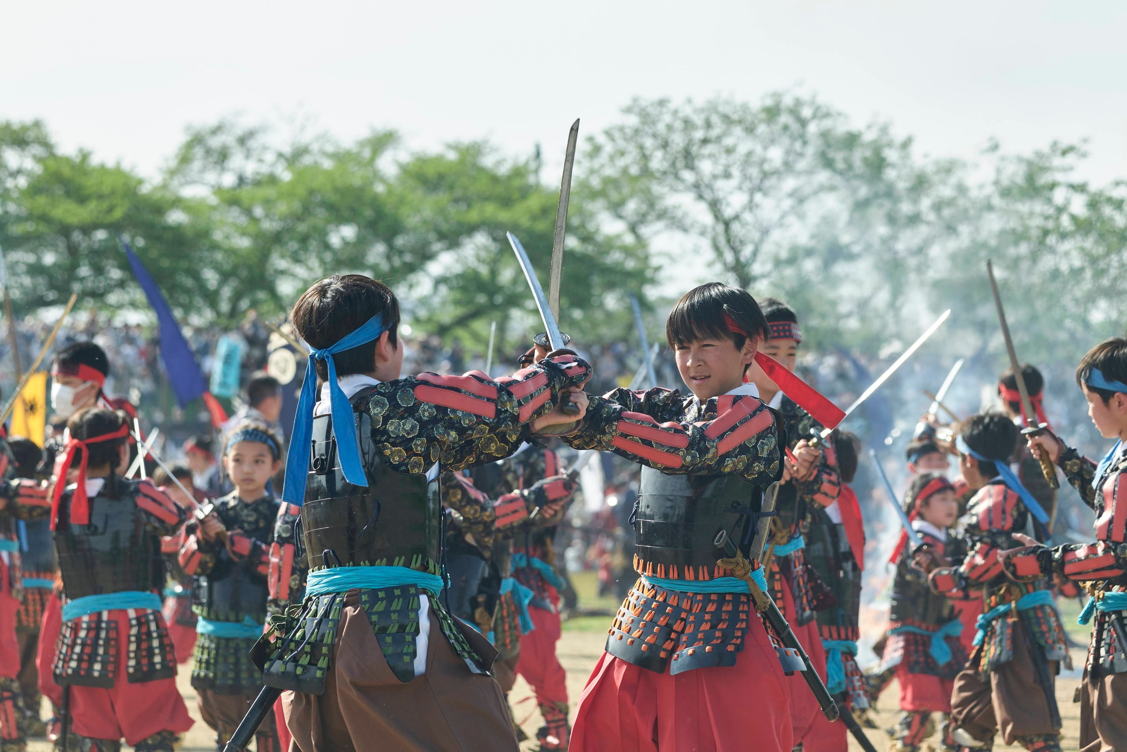 最大の特徴は、何と言っても約750名が実際に甲冑を着て合戦を繰り広げる全国でも米沢市でしかできないリアル戦国合戦体験である「川中島の合戦」への参加。甲冑を着る体験、武者行列の体験は全国に数多くありますが、実際に大河ドラマなどでつかわれている本格的な甲冑(約20キログラム)を750名の猛者(男女参加可)が纏い、上杉軍・武田軍に分かれて繰り広げる合戦に参加できる体験は米沢だけ。言葉では言い表せない、漫画やドラマで見る戦国の臨場感と迫力を五感で味わえます。イベント当日は、残雪の吾妻山を背に、火縄銃の発砲、上杉謙信が単騎で武田軍に斬り込む「三太刀七太刀」の名場面や、全軍団による総がかり等、まさに470年前の光景に出会える体験です。