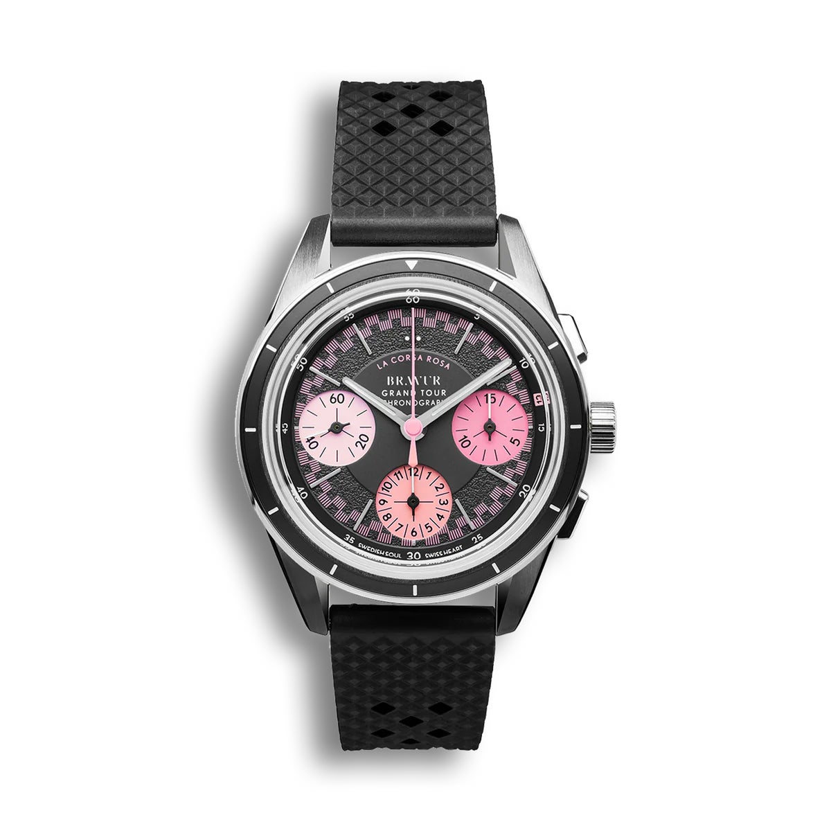 世界で最も象徴的な自転車レースへの情熱、挑戦、そしてエレガンスを讃えるコレクション。ツール・ド・フランス、ジロ・デ・イタリア、ブエルタ・ア・エスパーニャのスピリットにインスパイアされ、それぞれのレースの個性を色やグラフィック、デザイン要素を通じて表現しました。ジロの柔らかなピンク、ツールの力強い色彩、ブエルタの燃えるような情熱——それぞれのレースの本質を捉えたデザインは、単なる時計ではなく、サイクリングというスポーツへのオマージュとなっている。ケース径38.2mmのクラシックで洗練されたサイズは、自転車に乗るときも、日常でも自然に馴染む。スウェーデンで手作業で組み立てられ、スイス製の自動巻ムーブメントを搭載。細部までこだわり抜いた一本は、一生寄り添う相棒となることでしょう。グランツール・クロノグラフシリーズは、サイクリングの魅力、精密な技術、そして個性を讃えるコレクション。スポーツのエレガンスと時計づくりの芸術を愛するすべての人へ捧げます。