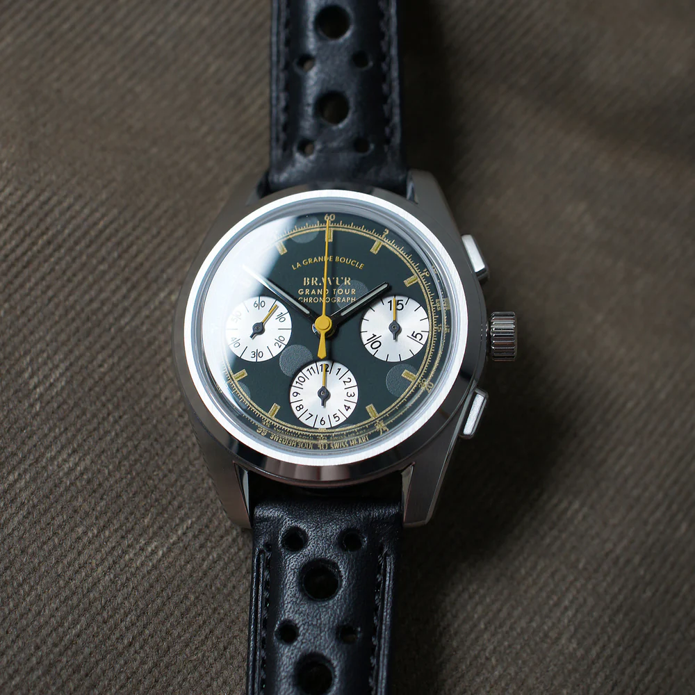 ツール・ド・フランスなど世界的な自転車レースにインスパイアされたクロノグラフシリーズ。スポーティなデザインと堅牢な設計を兼備。