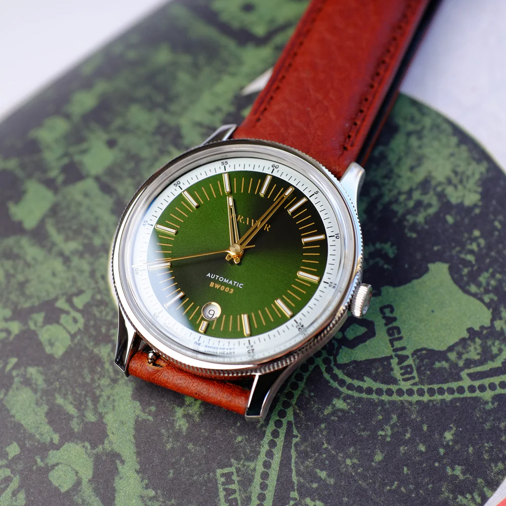 1950年代〜1980年代のロードレースの歴史に着想を得たモデル。耐久性のあるステンレススチールケースと視認性の高いデザインを採用。