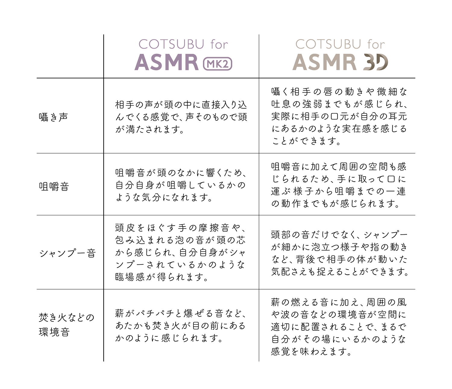 【ASMR専用の2つの異なる音質設計】