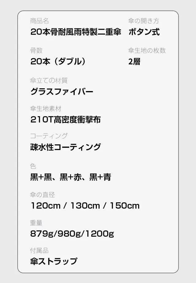 ■もう絶対に傘を折りたくない人のための【20本骨】超耐風・超大型ワンタッチ傘