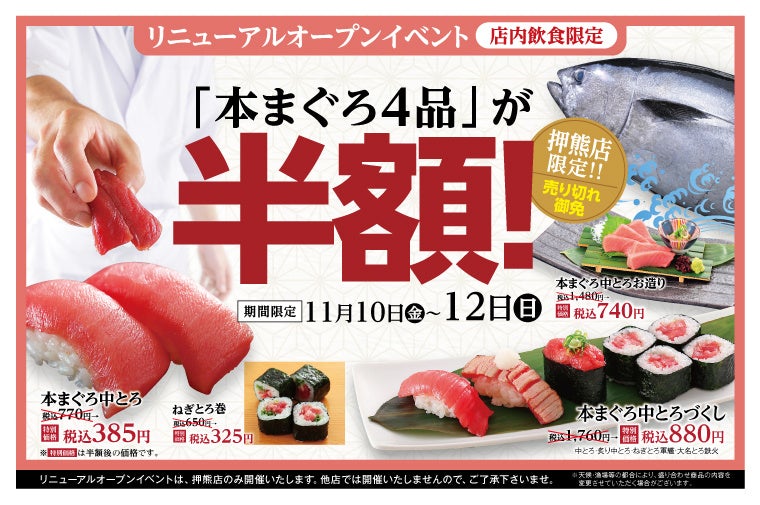 リニューアルオープンイベントとして、本まぐろ4品半額イベントを実施