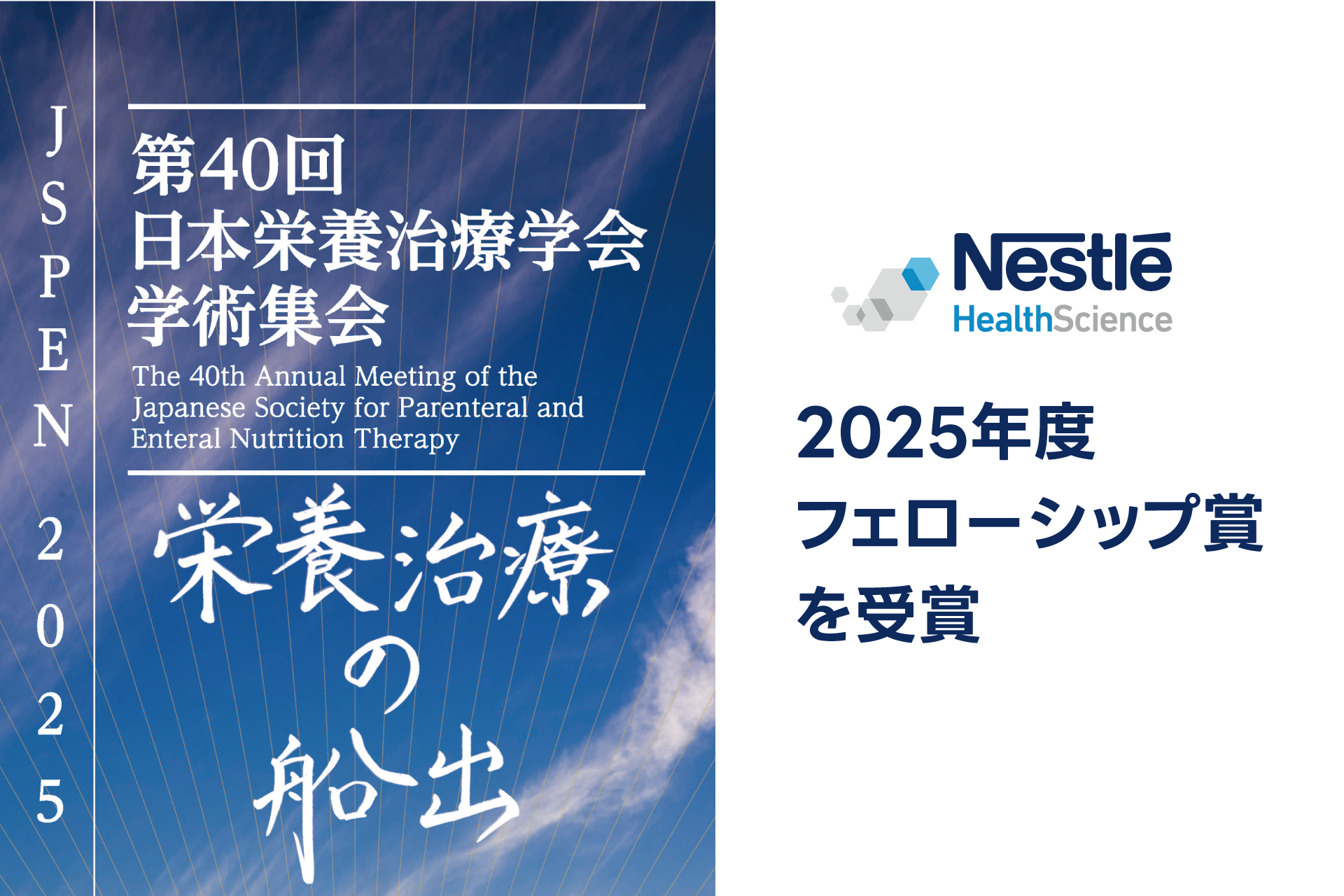 2025年2月14日と15日に横浜市で開催された『第40回 日本栄養治療学会※1学術集会(JSPEN2025)』にて、京都大学大学院消化管外科の上野 剛平先生の「胃癌術後患者に対する経口栄養補助剤の効果:多機関共同ランダム化比較試験」が2025年度フェローシップ賞※2を受賞しました。本研究は、京都大学消化管外科とその関連施設で構成される京都食道胃手術勉強会(代表:京都大学消化管外科教授 小濱 和貴先生)によって臨床研究法に基づく特定臨床研究※3として実施され、ネスレ日本株式会社 ネスレ ヘルスサイエンス カンパニー(本社:兵庫県神戸市、カンパニープレジデント:中島昭広、以下「ネスレ ヘルスサイエンス」 )は、本研究の実施に際し、国立大学法人京都大学との臨床研究契約に基づき、研究資金及び経口栄養補助剤を提供しました(本研究の計画や実施、発表に対して関与しませんでした)。