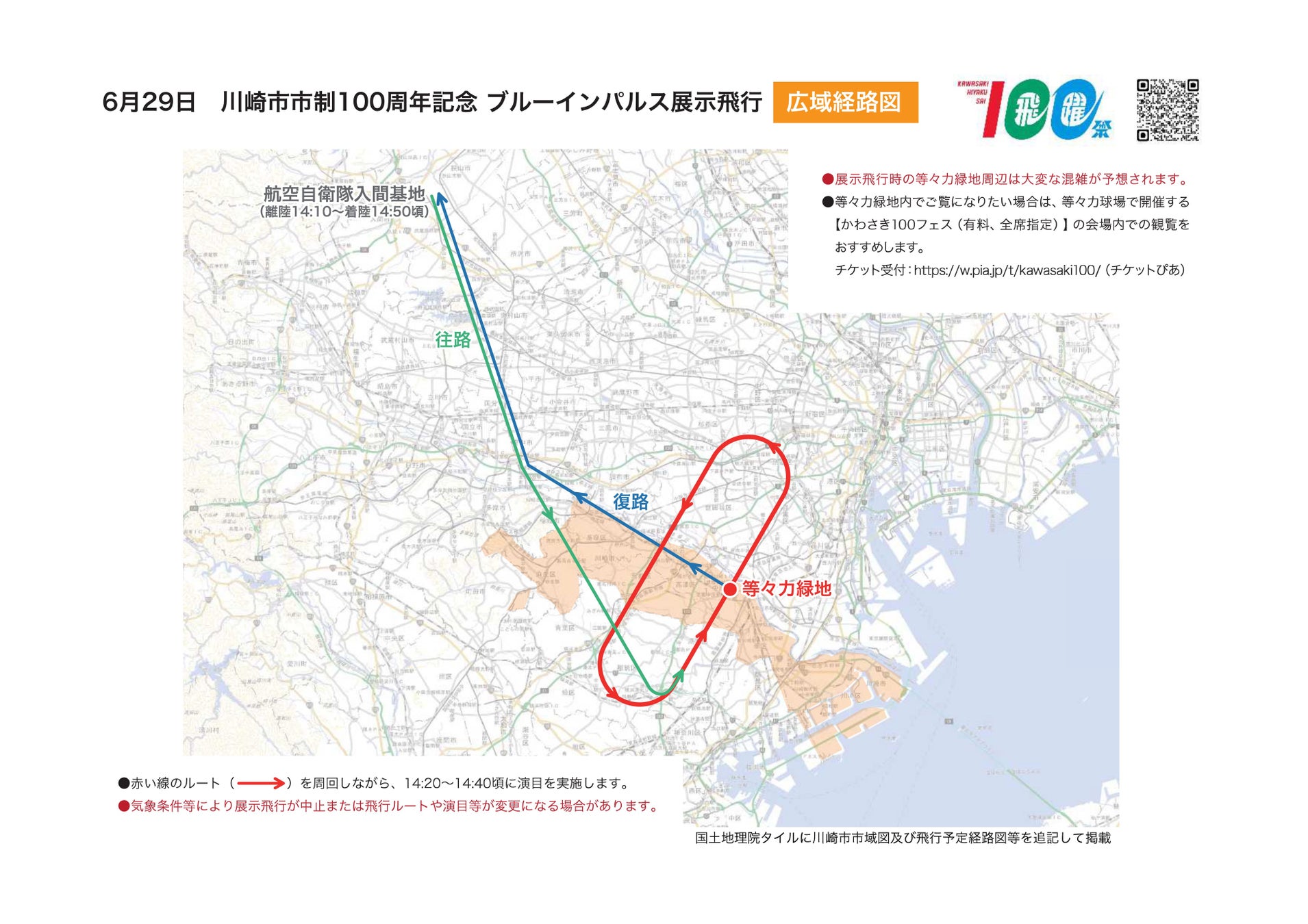 【川崎市市制100周年記念】6月29日 ブルーインパルス展示飛行の飛行ルート等について