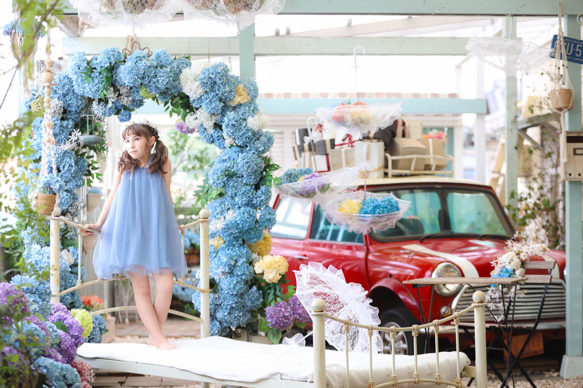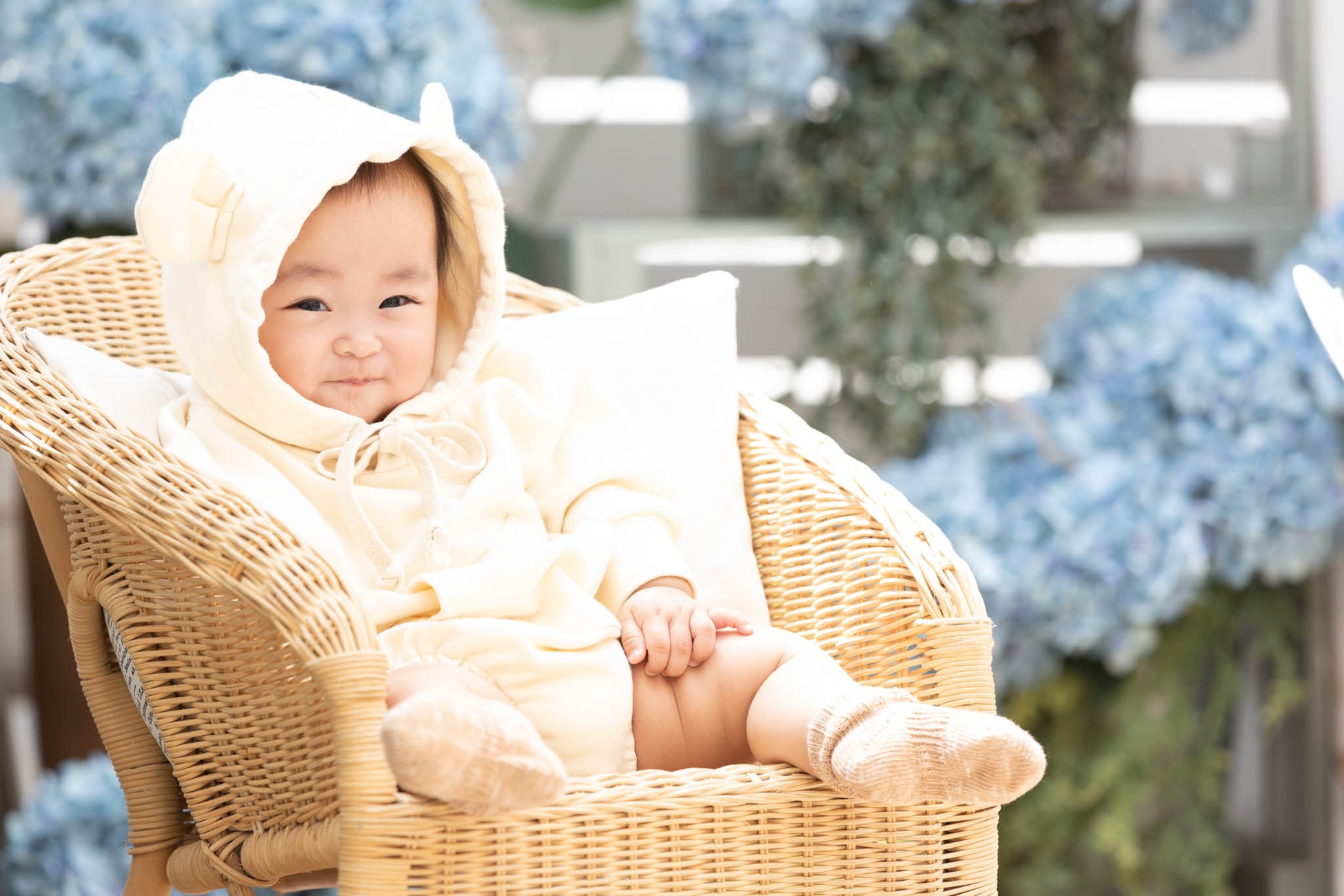 季節の花に囲まれたテラスは、ベビーからキッズ、家族写真、ソロショットまで幅広い撮影にマッチします。衣装の雰囲気に合わせて、小物やライティングのアレンジも可能。事前のご相談で、理想の一枚を一緒にデザインしましょう。