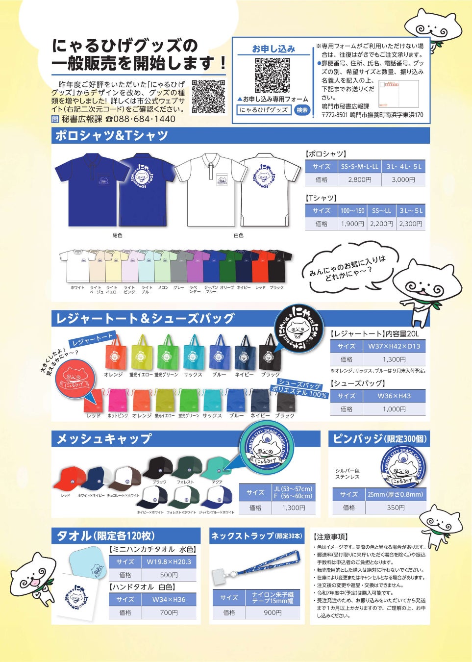 【徳島県 鳴門市役所】令和7年度にゃるひげグッズの一般販売を開始しています!