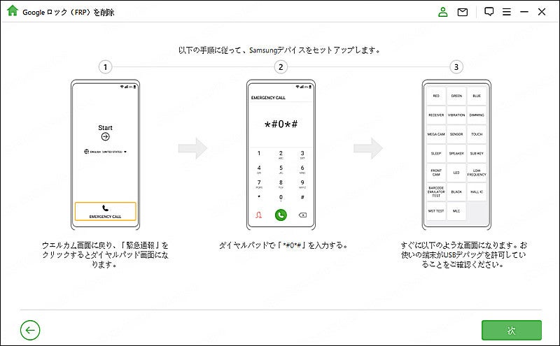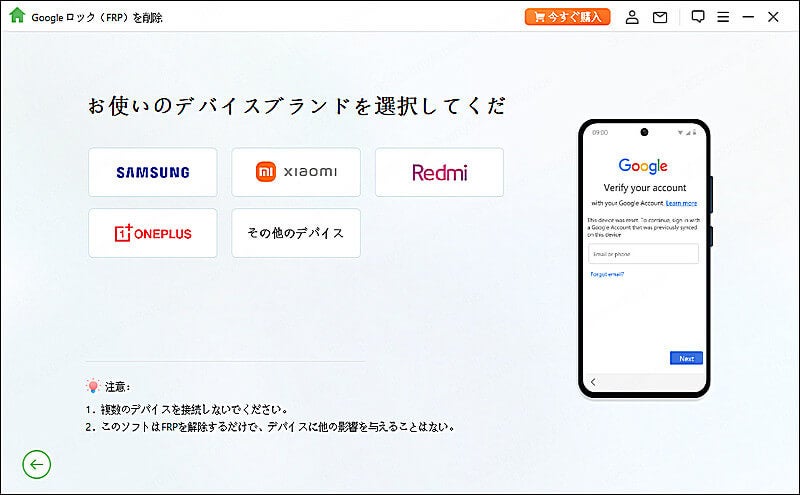 この部分では、GoogleのFRPロックを解除する方法を例として、LockWiper (Android)の使い方を簡単に紹介します。