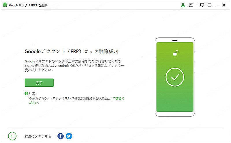 ステップ 3:下の画面になったら、ロックの解除は完了です。