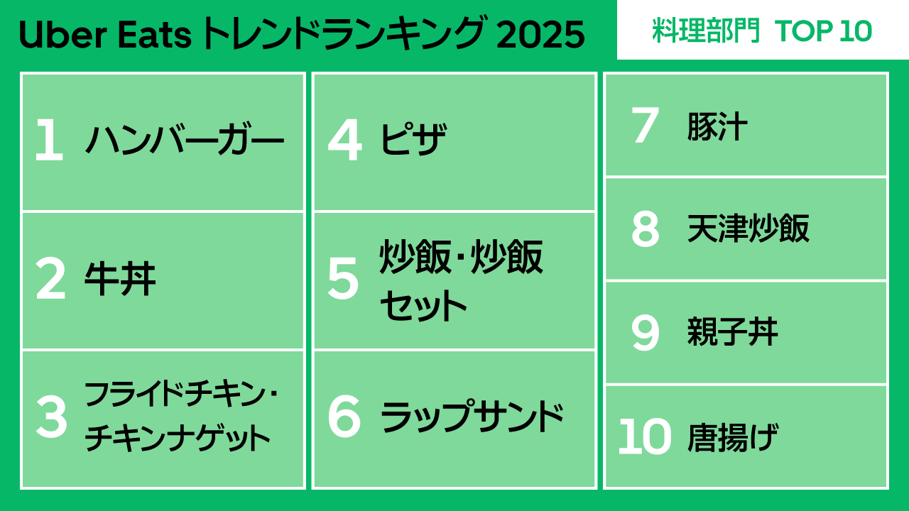 Uber Eats Japan合同会社(以下、Uber Eats)は2025年11月6日(木)、 2024年10月1日(火)〜2025年9月30日(火)のUber Eatsでの注文データをもとに傾向を分析し、 「Uber Eats トレンドランキング 2025」を発表しました。