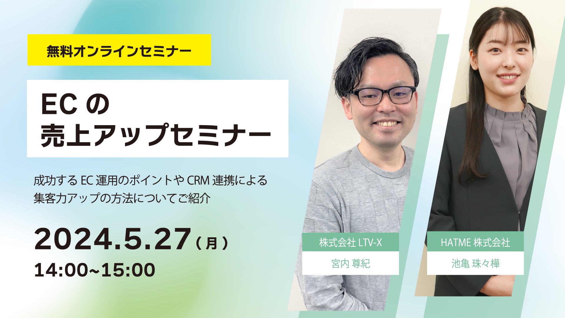 マーケティングアソシエーション株式会社の子会社であるHATME株式会社(本社:東京都台東区 代表取締役:中園広和、以下当社)は2024年5月27日(月)に、ウェブセミナー「ECサイトの売上最大化できていますか?~成功するEC運用のポイントやCRM連携による集客力アップの方法についてご紹介~」を、株式会社LTV-X様と共催いたします。