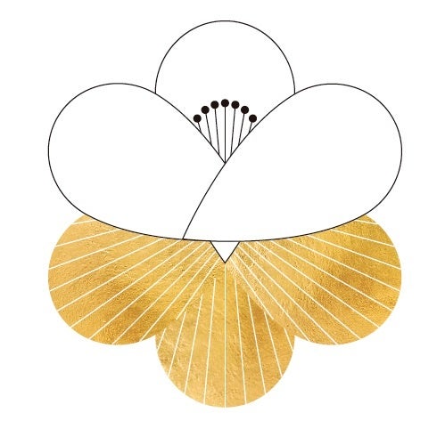 数字の「3」は、その読みが「みつ」であることから、「満つ(みつ)」や「充つ(みつ)」と意味を重ね合わせて、満たされる、思いや願いが叶う、充足感などを象徴する縁起の良い言葉として考えられてきました。その「3」をモチーフに和洋折衷の花を家紋=花紋とし、花と葉のそれぞれ3枚に加えた上に数字の3を重ね、和の世界を表現しています。