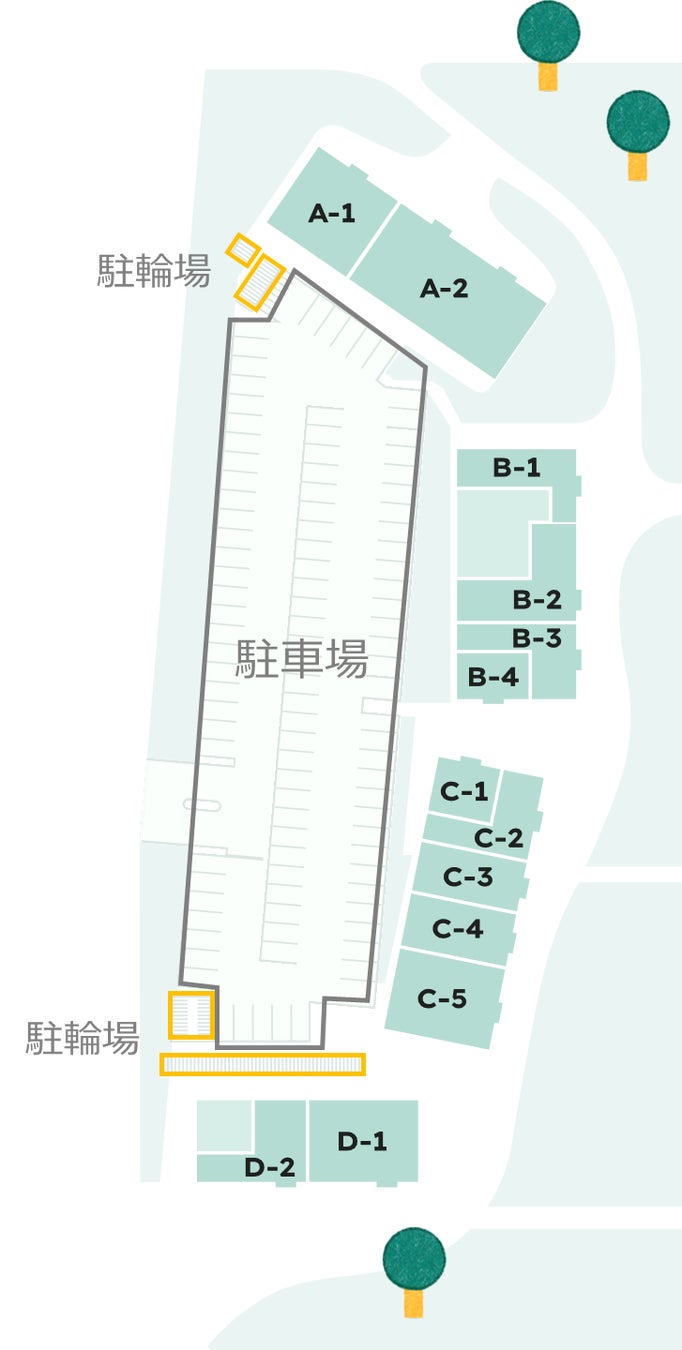 遺構表示、芝生広場、商業施設 駐車場(96 台※有料)、駐輪場(95 台※無料) |
