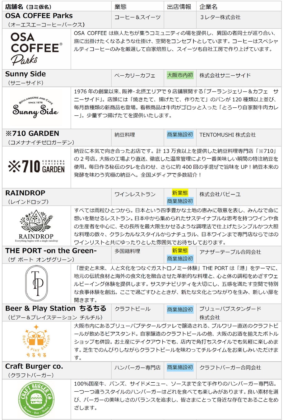 ⼤阪市内初出店1 店舗、商業施設初出店9 店舗、新業態2 店舗︕