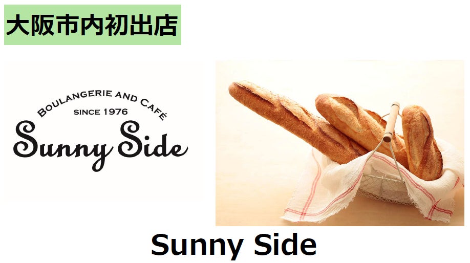 堀江や中崎町で⼈気の「旅」をテーマとしたコーヒー&スイーツ「OSA COFFEE Parks」が出店するほか、阪神・北摂エリアを中⼼に展開する120 種類以上のパンが並ぶベーカリーカフェ「Sunny Side」が⼤阪市内初出店します。