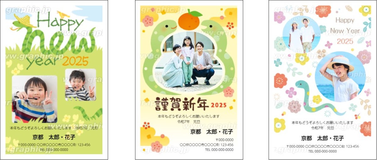 ご家族やお子様の写真が1~3枚程度レイアウトできる、写真窓のあるファミリー向けの年賀状を募集しております。