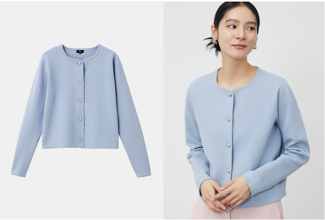 ◯一枚でも着られ、羽織りとしても活躍するジャケットライクなカーディガン