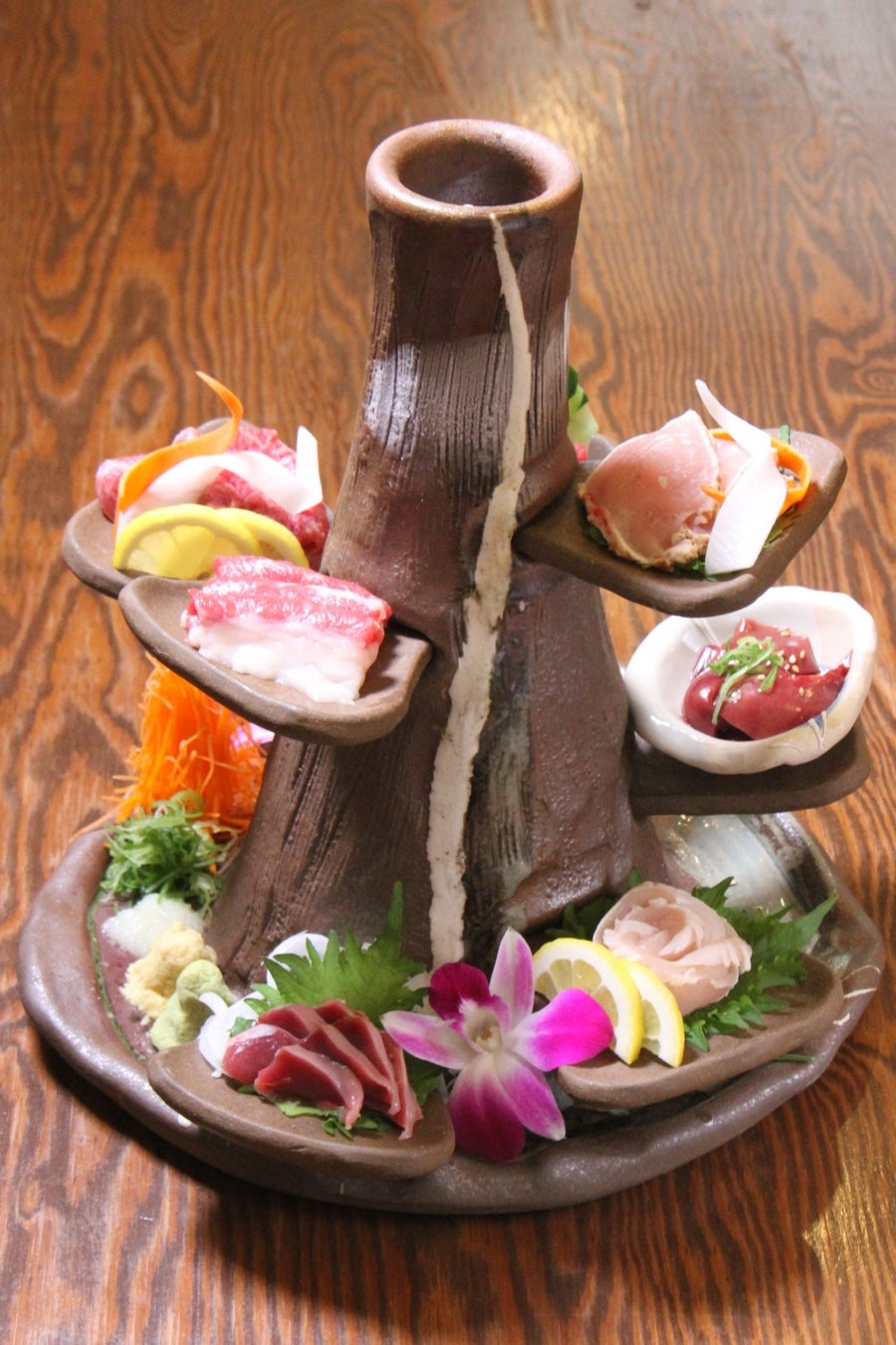 自慢の名物「満開にほんいち盛り」は馬刺しも鶏刺しも同時に楽しめる!