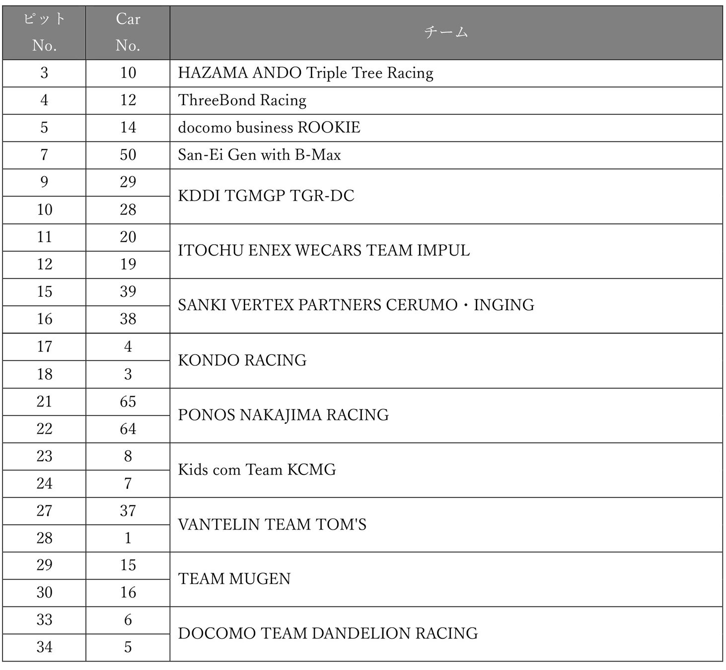 2025 SUPER FORMULA Rd.6-7 ピット割り