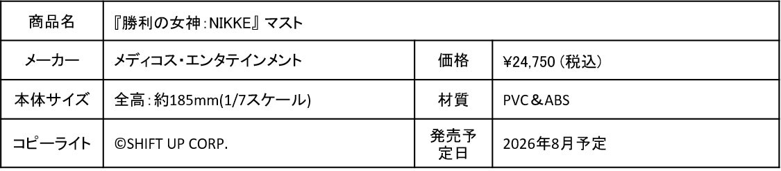 株式会社ホビーサーチ(東京都文京区)は、メディコス・エンタテインメントの新商品『勝利の女神:NIKKE マスト』 (2026年8月発売予定)の予約受付を開始しましたことをお知らせいたします。