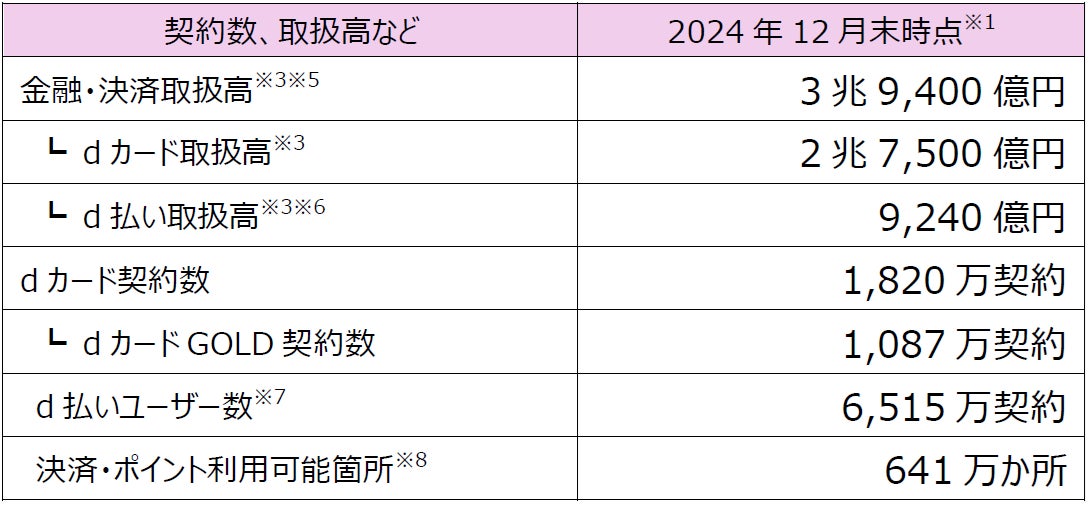 ※8「決済・ポイント利用可能箇所」はdポイント・iD・d払い決済(コード決済およびネット決済)利用可能箇所の合計です。