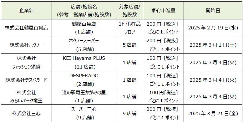 * 記載の店舗/施設数は、発表日現在の店舗/施設数となります。