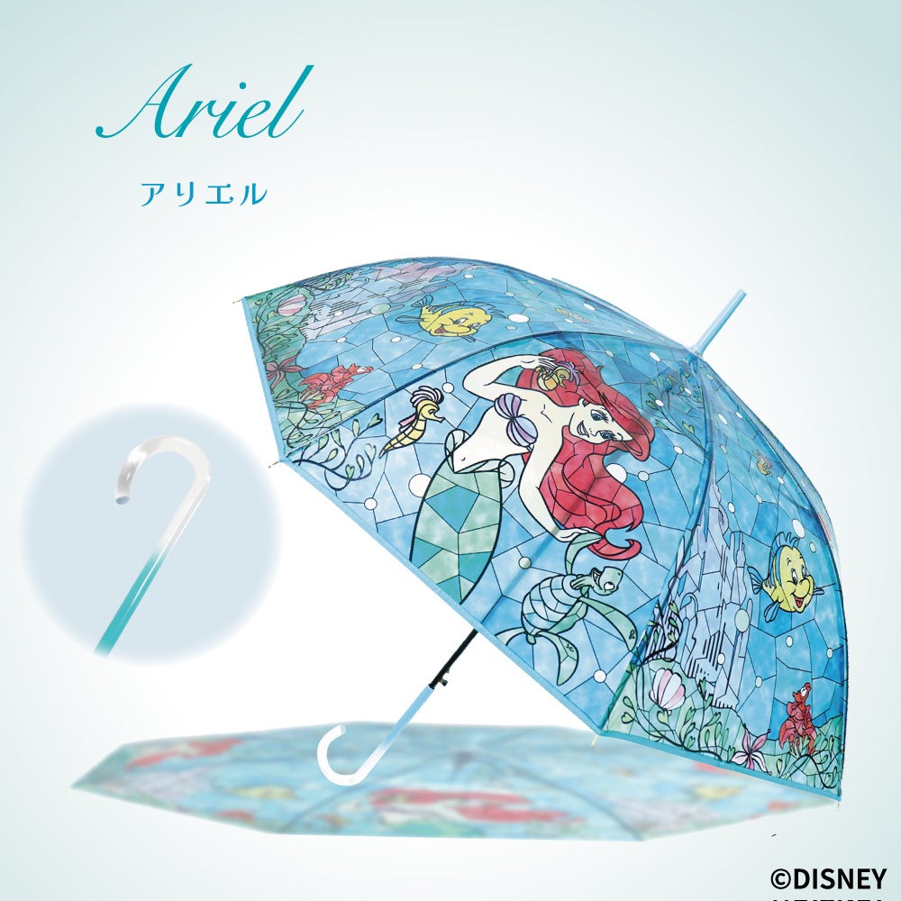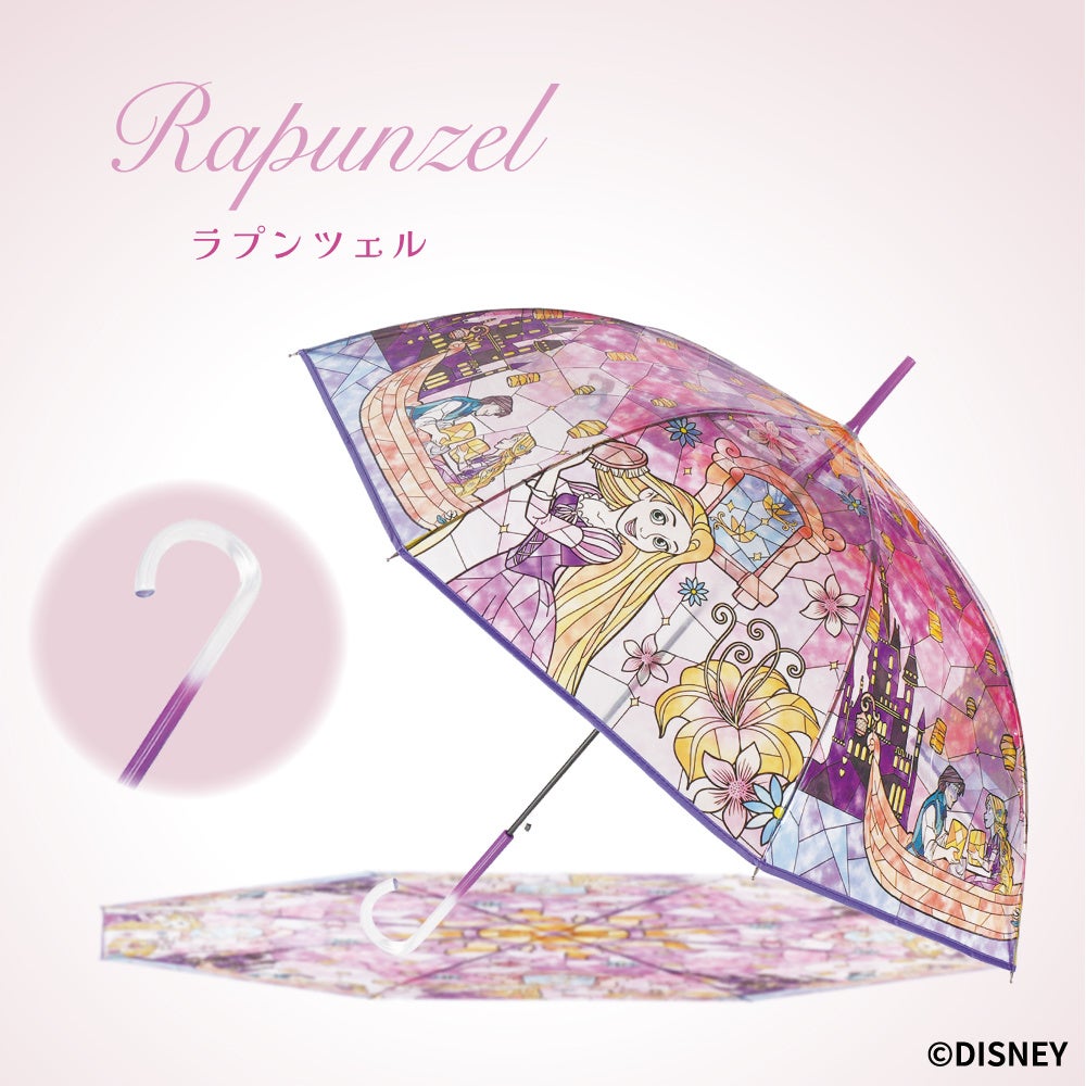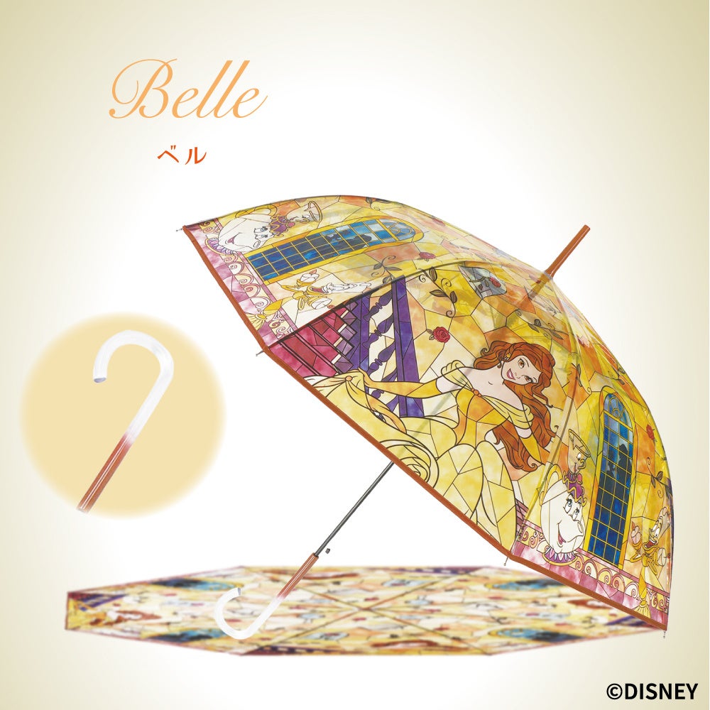ディズニープリンセスをモチーフにしたステンドグラス風デザインの傘が再入荷!透明感あふれる幻想的な世界観が、雨の日を華やかに彩ります。