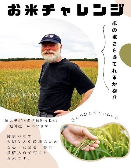 ぴたり賞の中から抽選で、泉大津市学校給食提供米「ゆめぴりか」を差し上げます。