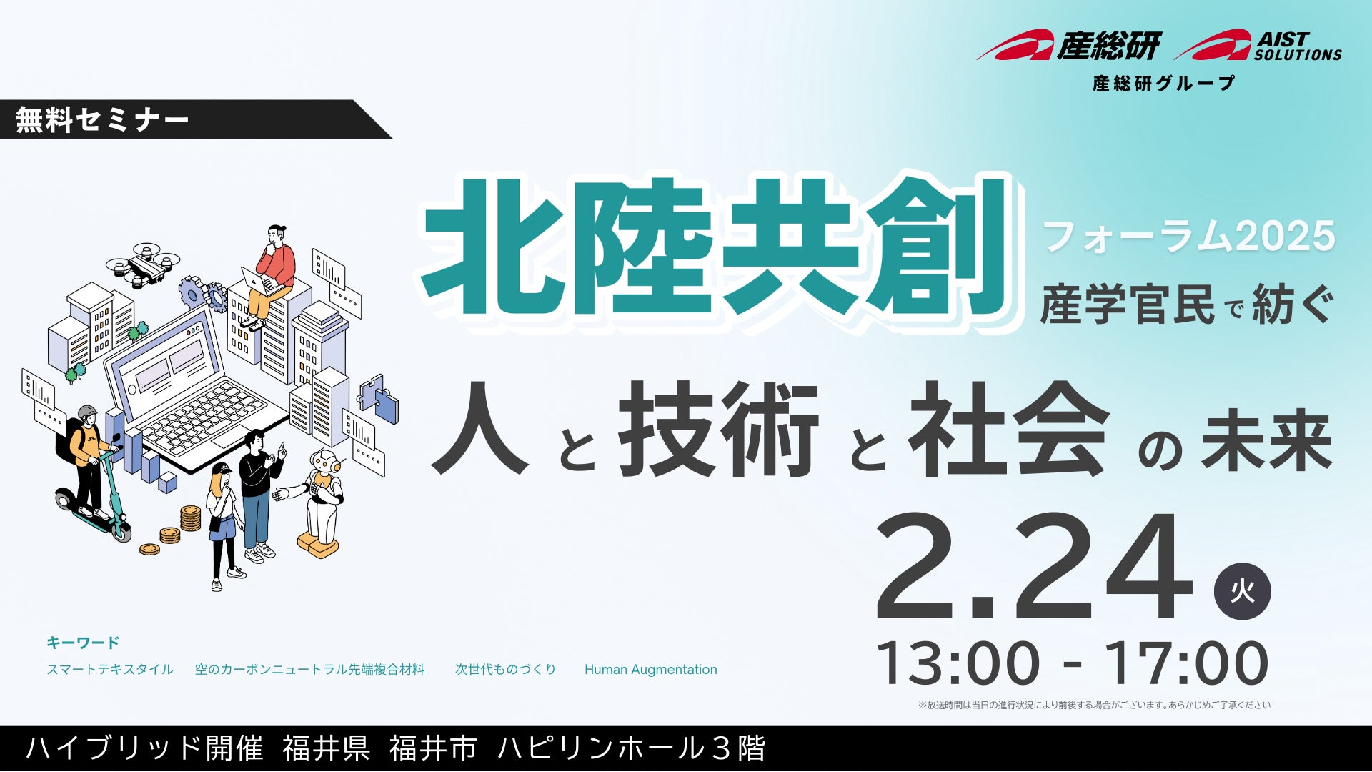 【AIST Solutions:セミナー】産業技術総合研究所 北陸共創フォーラム2025 ー産学官民で紡ぐ人と技術と社会の未来ー (2/24 福井会場+オンライン開催)