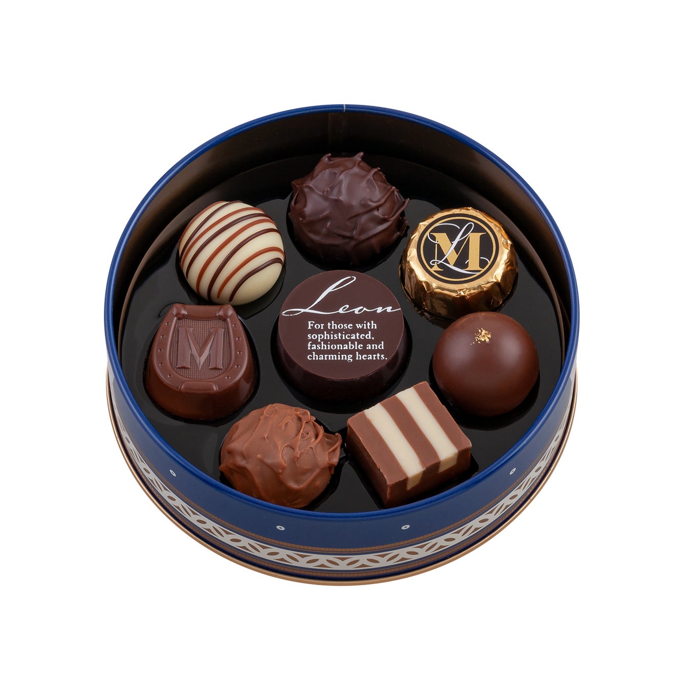 天文時計をイメージした2025年デザイン缶に風味豊かなトリュフやプレーンチョコレートを詰合せた一番人気のアイテムです。