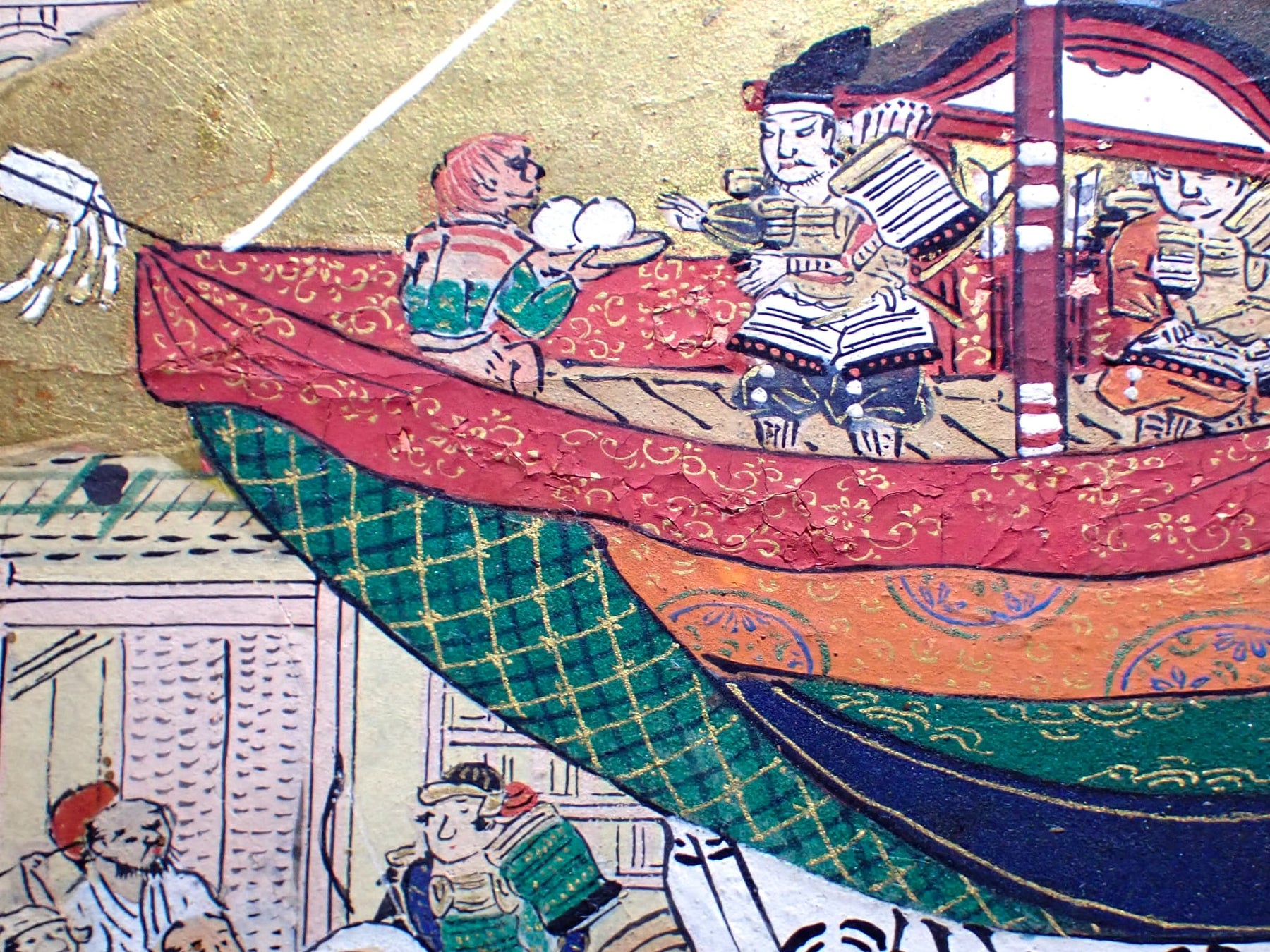 屏風は平成11年・12年に大規模な修理を行いましたが、それから25年以上が経過し、経年により絵具層の剥離やひび割れが見られるようになったため、令和7年度に「ガバメントクラウドファンディング®」を活用した修理を行いました。