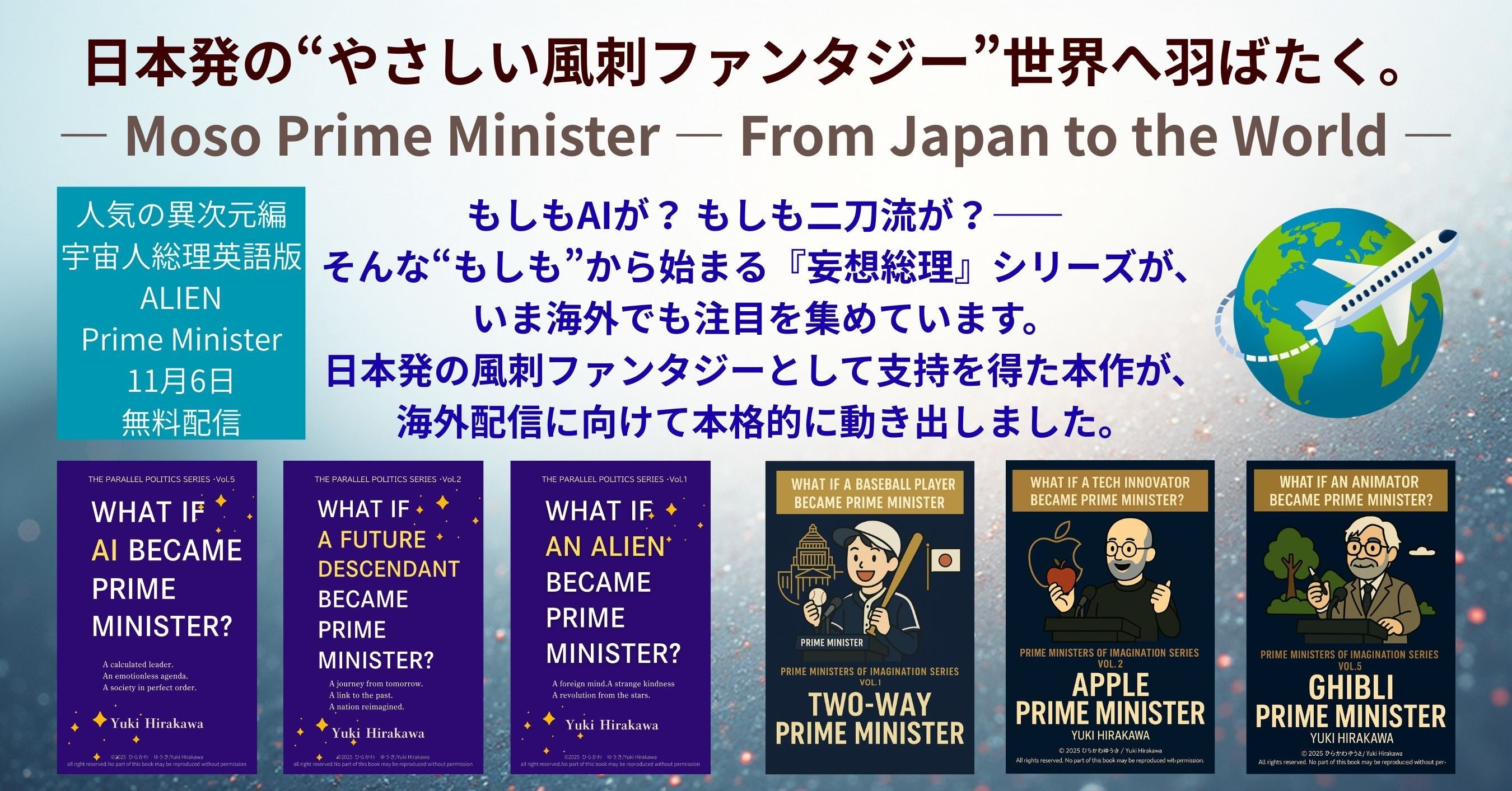 【特集】『妄想総理』全シリーズ英語版・海外展開へ。日本発の“やさしい風刺ファンタジー”世界へ羽ばたく。― Moso Prime Minister — From Japan to the World ―