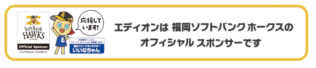 株式会社エディオンは、地域・社会のスポーツ文化発展に貢献するため、福岡ソフトバンクホークス株式会社(本社:福岡県福岡市 代表取締役社長 CEO:後藤芳光)とオフィシャルスポンサー契約を締結しています。このたび、福岡ソフトバンクホークス4年ぶり通算22回目(前身球団時代も含む、ソフトバンクホークスとして7回目)となるパーソル パ・リーグのペナントレース優勝を祝し、本日より、九州エリアのエディオン直営店舗*におきまして記念セールを開催いたします。*一部店舗を除く