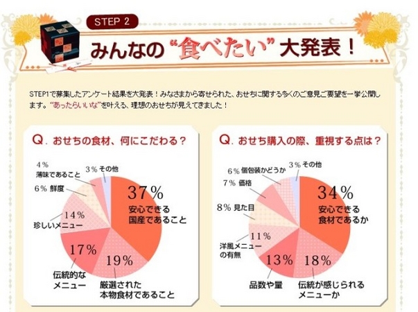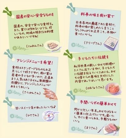 お客様から寄せられた声をweb上で掲載。おせちに関する