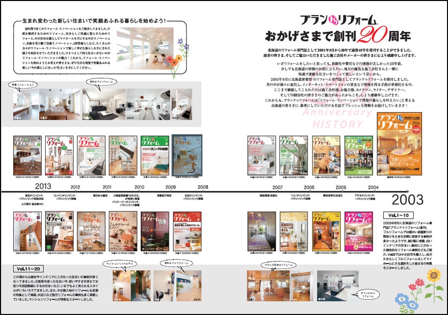 2003年に北海道リフォーム専門誌として創刊。現在は北海道唯一のリフォーム・リノベーション専門誌として北海道の有料施工会社を事例・エリア・特徴などから探すことも可能。6月15日(木)にはプランドゥリフォーム40号が発売。