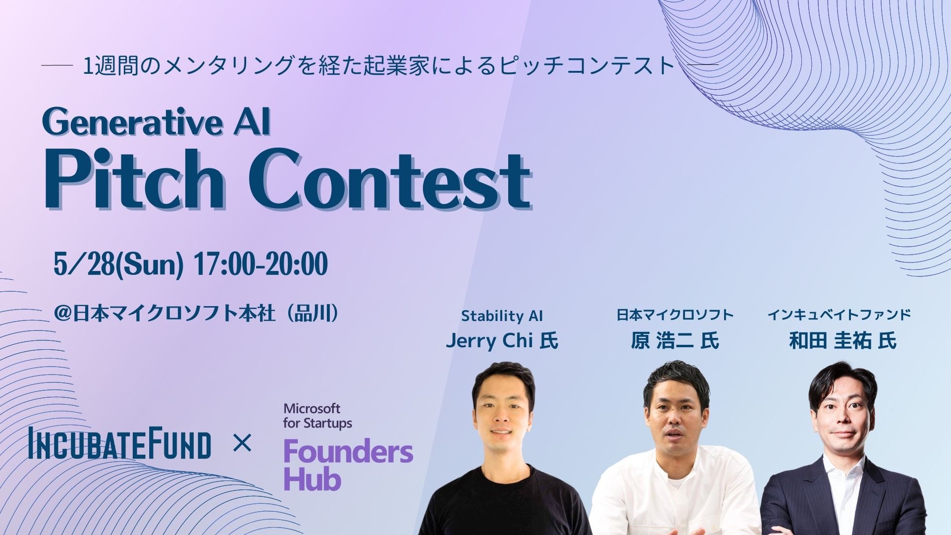 【インキュベイトファンド × マイクロソフト共催】Generative AI特化のオープンイベント・ピッチコンテストを5/28(日)に開催!見学者を本日より募集開始