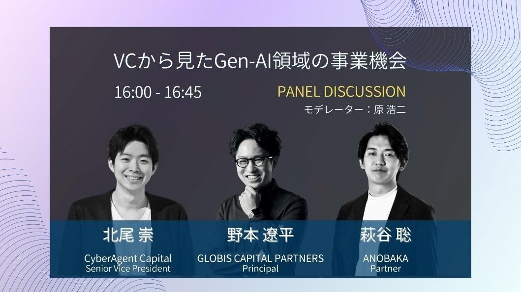 ピッチイベントでは、プログラム採択者による「AI音声変換/合成、ワークフロー自動化、ESG情報の可視化、脚本の自動生成」など、多岐に渡るテーマで事業アイデアをプレゼンさせていただきます。Generative AI領域に興味のある方や起業家、VC、メディアの皆様はぜひご応募いただけますと幸いです。