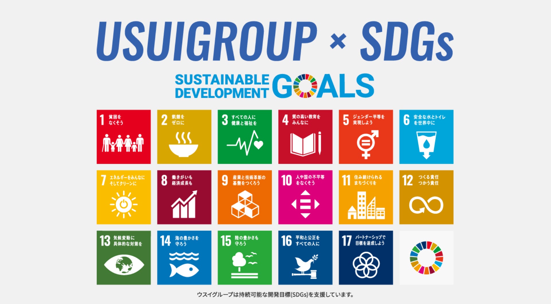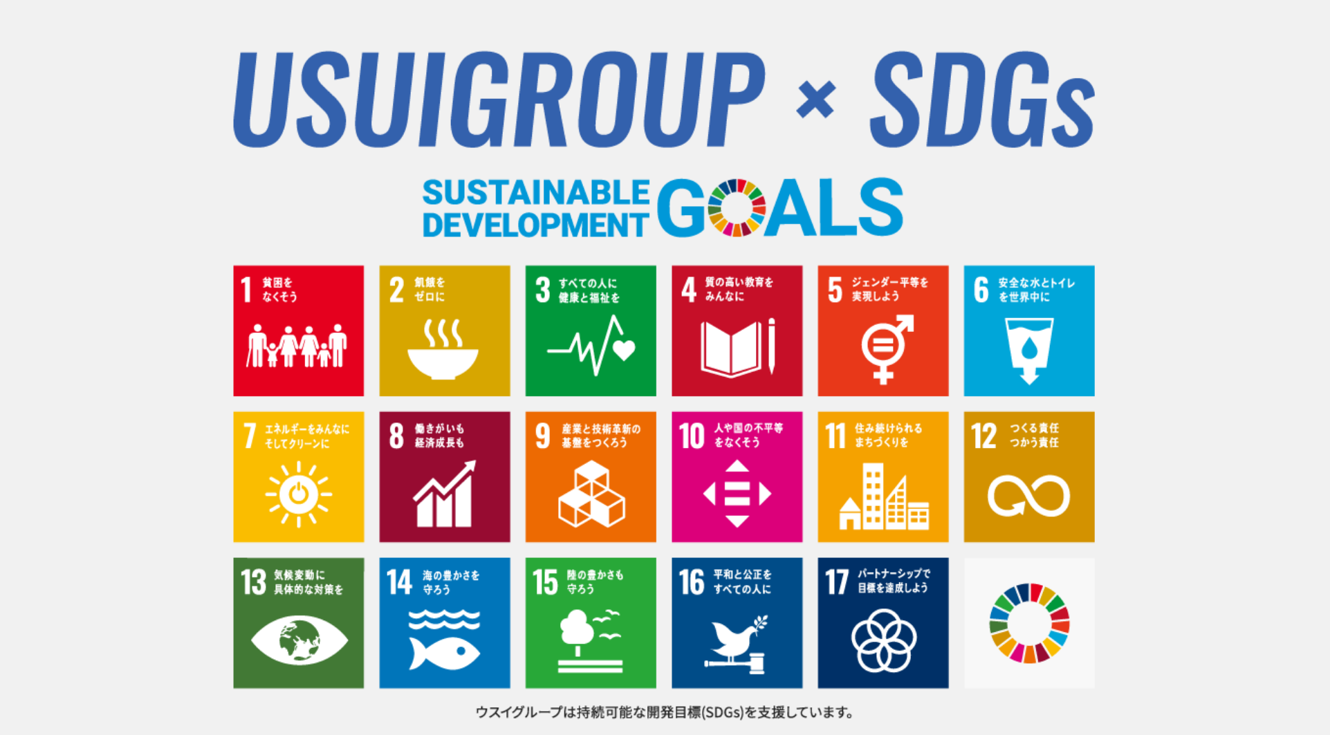 ウスイグループではSDGsへの取り組み・全社を挙げた意識改革として、各店舗・部門で以下の5つの施策から1つを選定し、実施しています。