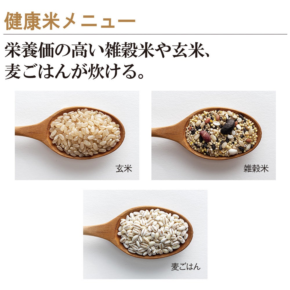 また、健康に気を遣う方に大人気の「もち麦」や「押し麦」も麦の風味を活かしながらふっくらもちもちに炊き上げる専用のメニューがあります。● ふたヒーターつきでふっくらおいしい「全面加熱」