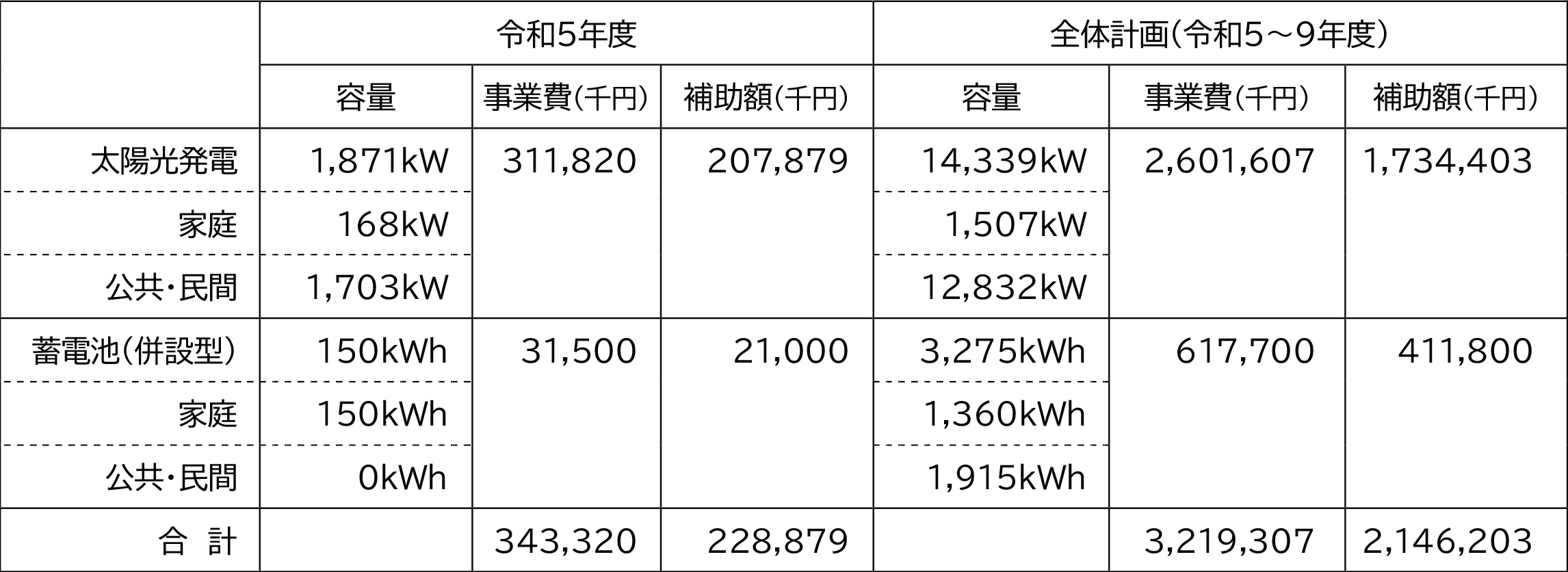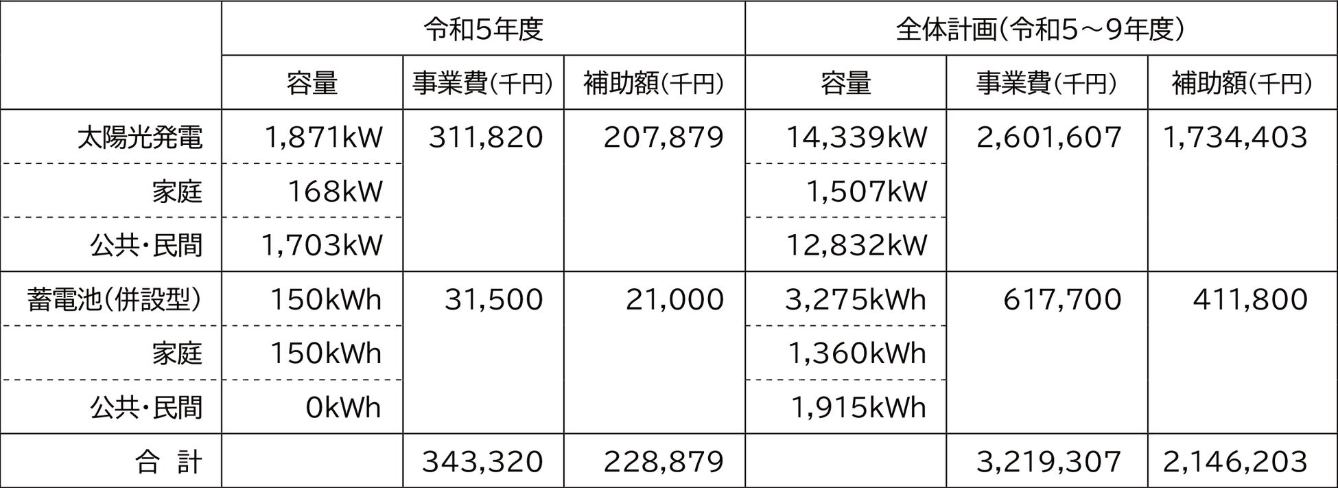 ・太陽光発電及び蓄電池(併設型)を含む全事業に係る令和5~9年度の総事業費は、41億5,630万7千円。