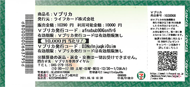 Vプリカ購入後、レジで受け取るチケットに【10,000円当たり!】の記載があれば当たりです。