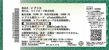 セブン‐イレブン限定 Vプリカ10,000円券を購入でVプリカ10,000円券が当たる!
