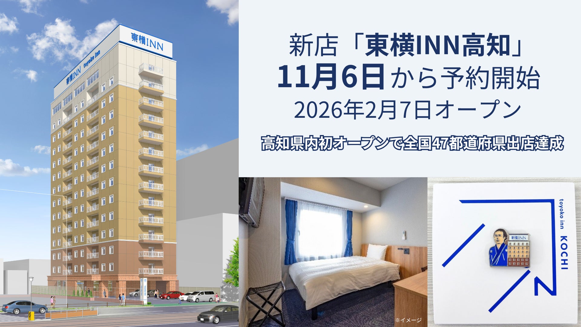 株式会社東横イン(本社:東京都大田区)は、11月6日(木)から2026年2月7日(土)オープン予定の「東横INN高知」の宿泊予約の受付を開始します。ぜひ東横INN公式予約サイトからご予約ください。