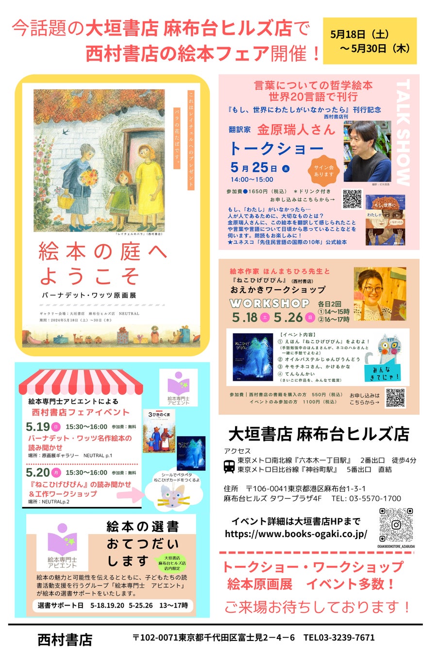 *大垣書店麻布台ヒルズ店にて5月18日から30日まで、小社が所蔵する人気絵本作家の原画展など、〈西村書店フェア NISHIMURA EHON MUSEUM-もし、世界にわたしがいなかったら〉を開催します*